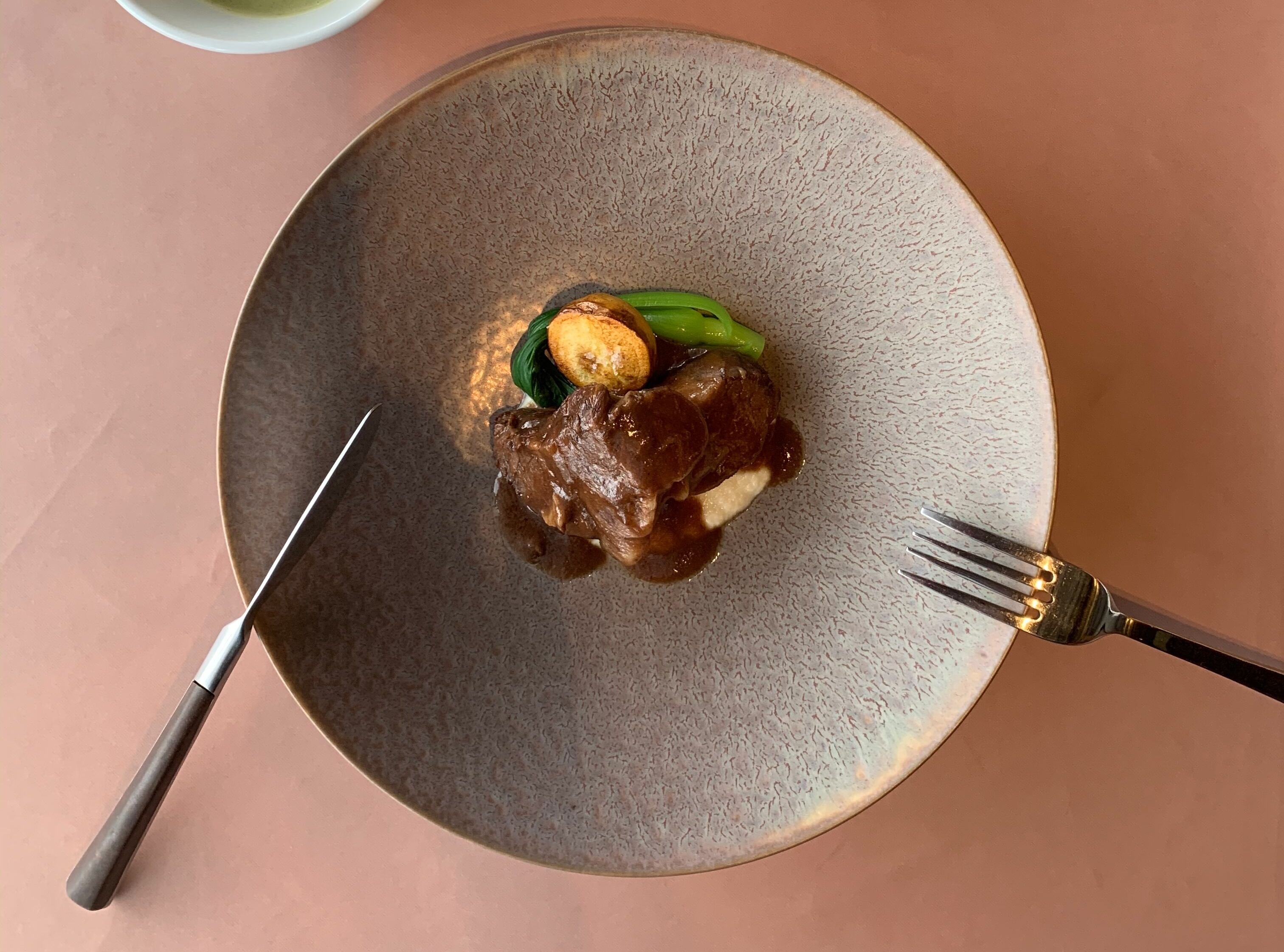 年間75頭しか産まれない貴重な黒毛和牛を使っています。仕入れにより部位はモモ肉かスネ肉になります。