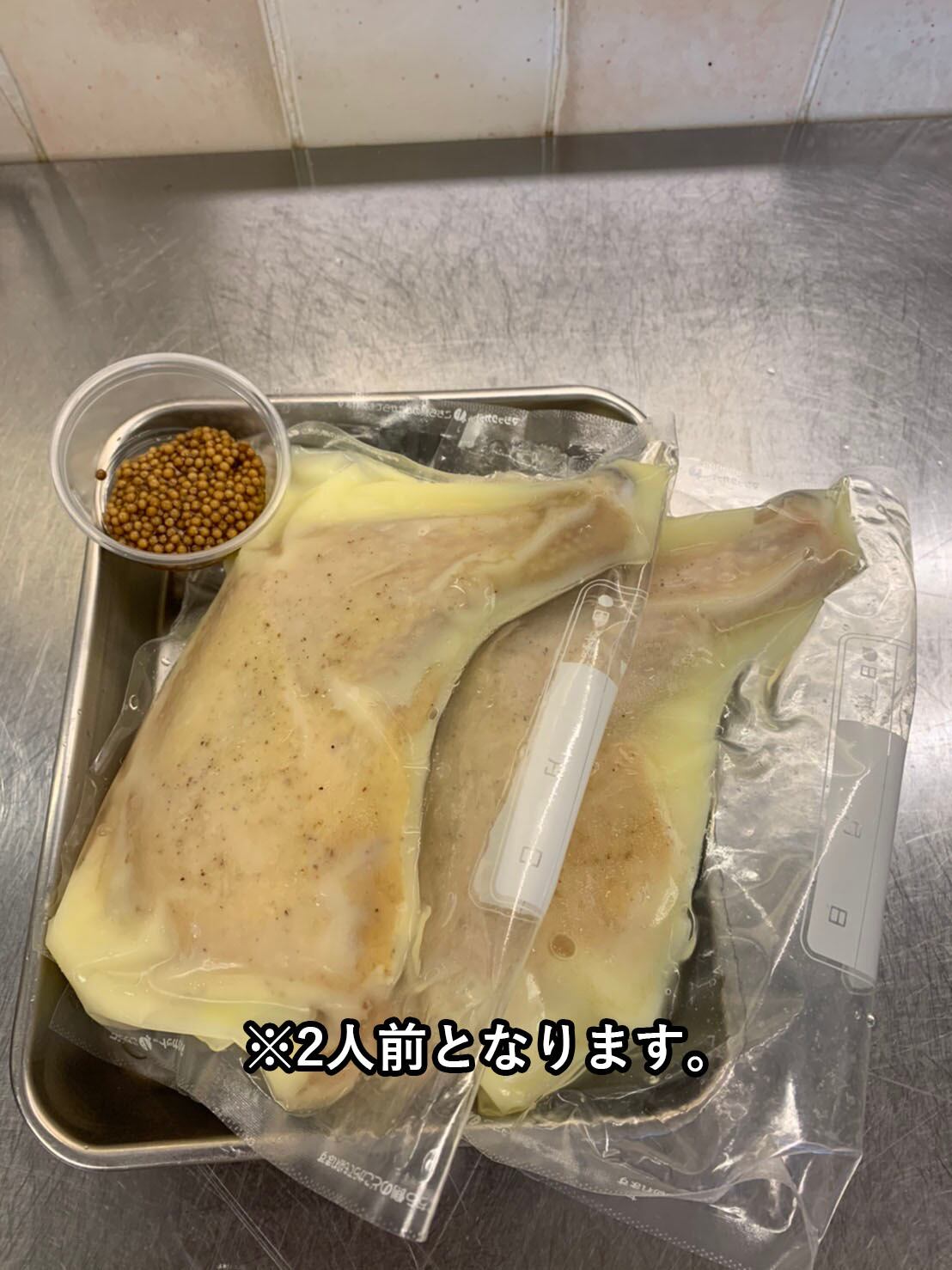 【食べ方】解凍後、皮目を下にテフロン鍋で弱火で、パリパリになるまでゆっくり焼き色をつけて下さい。